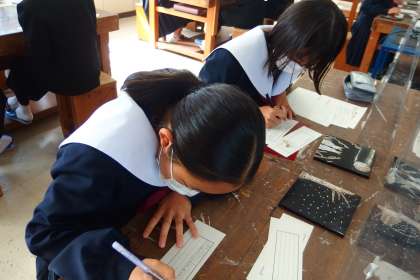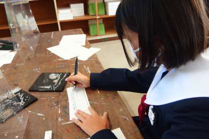 完成したお互いの作品を鑑賞し合い、感想や批評を記入しています。