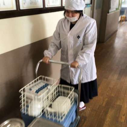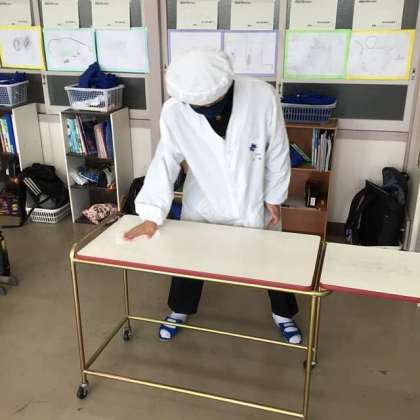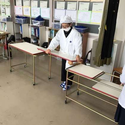 今日は1・2学級の給食準備の様子をお伝えします。