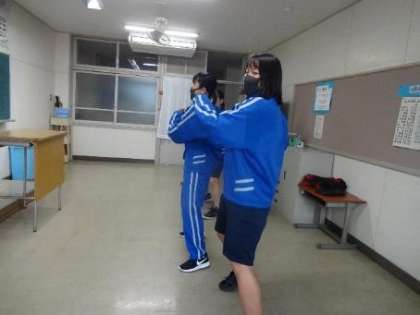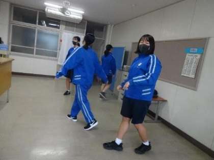 外から教室を覗いてみたら、3年生の女子が踊りの練習をしていました。