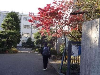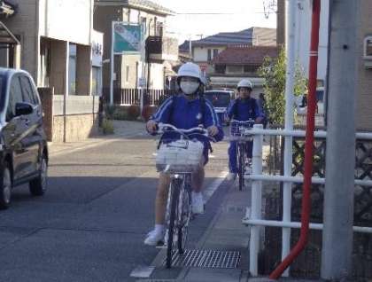 道幅が決して広くはないので、歩行者も自転車も車道にはみ出さないように、気をつけて登校しています。