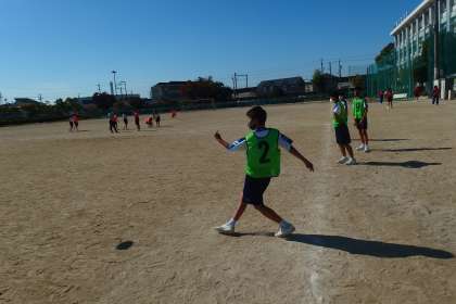 体育祭の実施種目のアルティメットを練習しているところです。