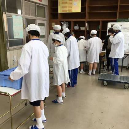 今日は、1・2学級の給食準備を見に行きました。