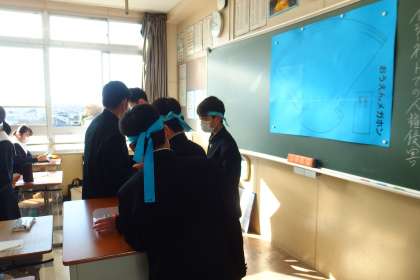 明日の体育祭のためのハチマキが配られ、気合が入ってきました。