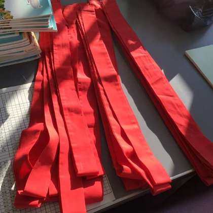 担任の先生からのメッセージと、役目を終え、回収されている体育祭で使ったクラスカラーのたすきです。