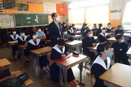 校長先生は毎朝、3学年すべての教室をまわっています。