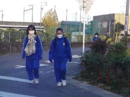 写真から寒さが伝わるでしょうか? 〜今日の登校風景3〜
