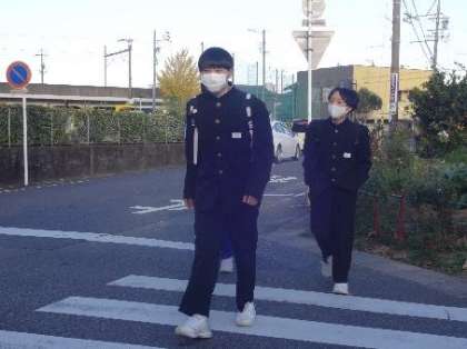 同じく今朝の正門前の登校風景です。