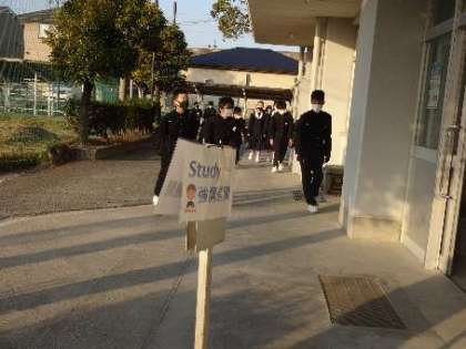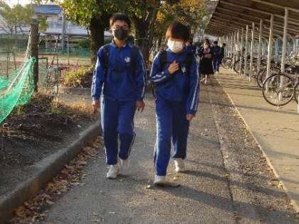 後期中間テスト初日の朝、登校風景です。