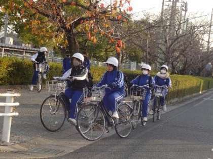 西門の外の登校風景です。