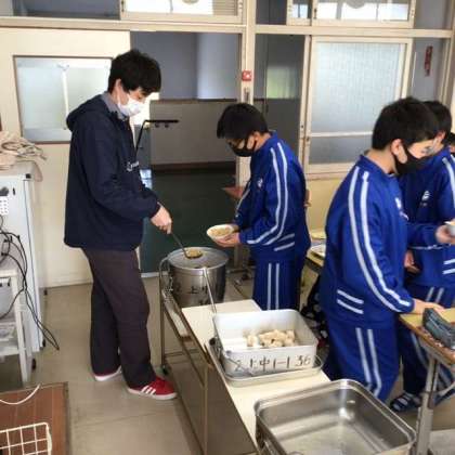 少しでも残菜を少なくしようと、多く食べられる生徒が協力しています。