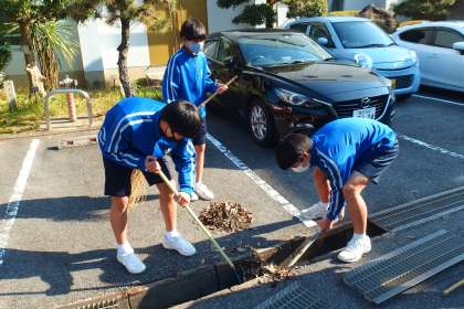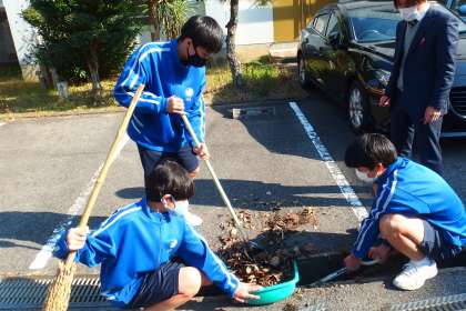 落ち葉の季節とあって、取っても取っても撮り切れないくらいの落ち葉が溝にたまっていて、力を合わせて落ち葉を片付けてくれていました。