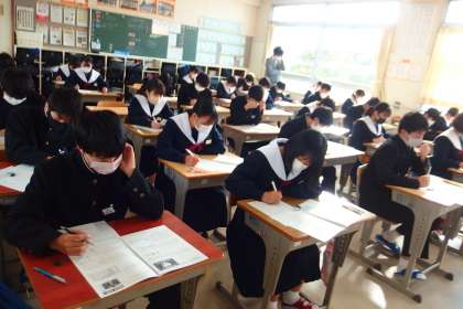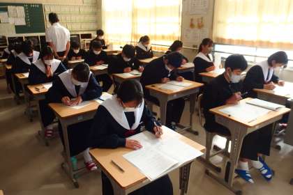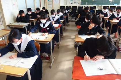 後期中間テストの2日目、3年5組・4組・3組の様子です。