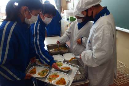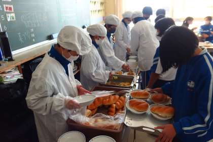 1年生の配膳の様子です。