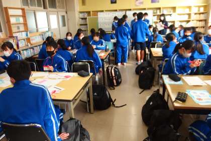 テスト後で疲れているにもかかわらず、交流館の担当者の方と共に、真剣に取り組んでいました。