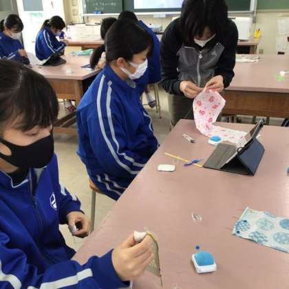 ポケットティッシュ入れを作っています 〜1年生の家庭科授業 その3〜