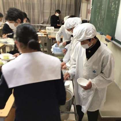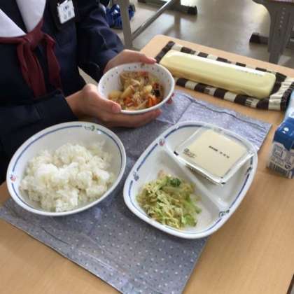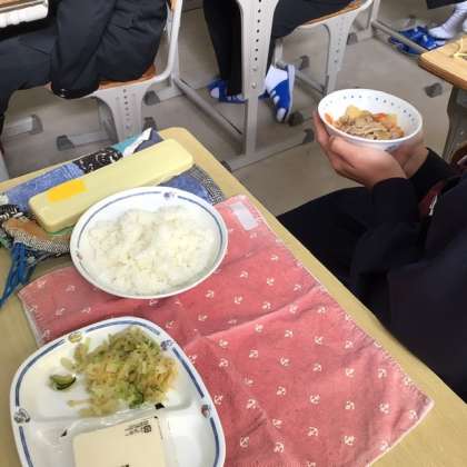 温かい給食が配られると、両手で食器を持ち、手を温めている生徒がかなりいました。