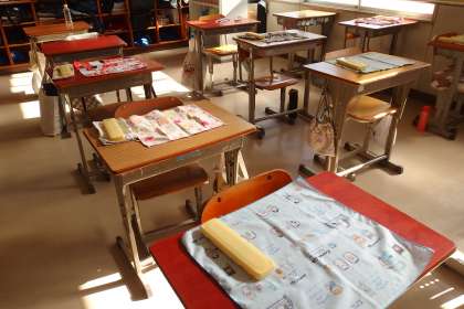 移動教室で誰もいませんが、給食の準備をしている生徒が多く、さすが3年生と感心させられました。