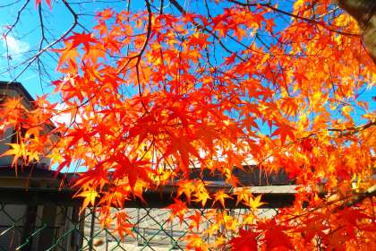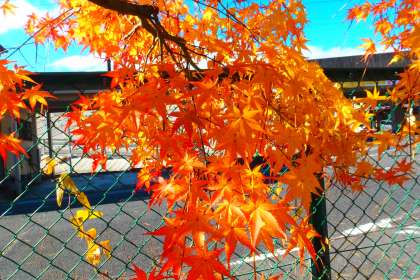 校舎東側のモミジは落葉してしまいましたが、西側のモミジが元気でしたので、今日こそ最後かもしれないと思ってアップします。