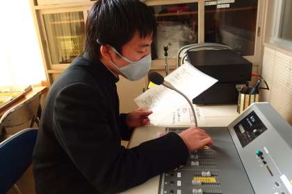 お昼の放送を担当してくれた放送委員と給食献立一口メモを紹介してくれた給食委員です。