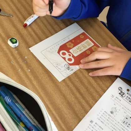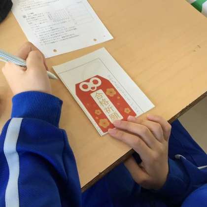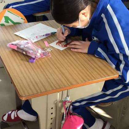 同じクラスに所属する特別支援学級のお友だちの入試が近づいてきたので、合格祈願のお守りを手作りしているとのことでした。