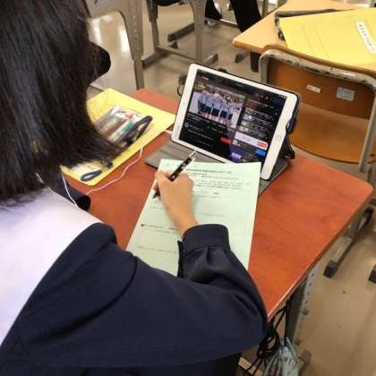 動画で観た内容や感想を、ワークシートに記録していました。