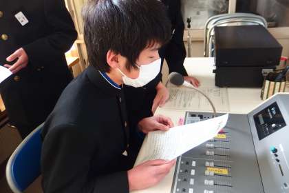 お昼の放送を担当してくれた放送委員と給食献立一口メモを紹介してくれた給食委員です。