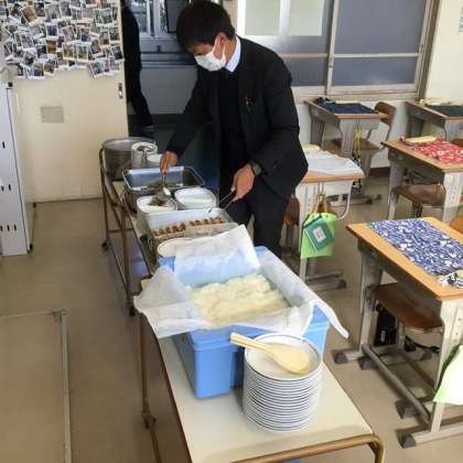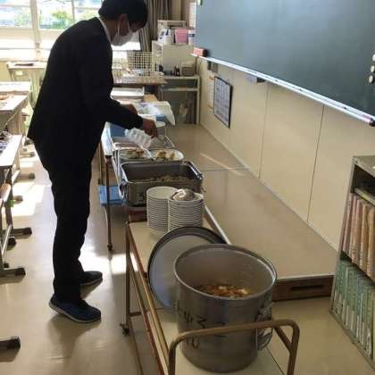 私(校長)も、その姿を目にして、写真ばかりを撮っていられず、思わず配膳の手伝いを始めました。