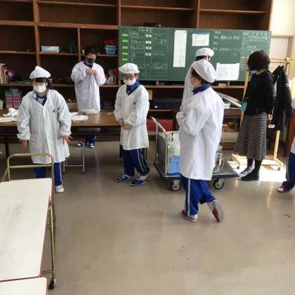 今日は、1・2学級の給食準備の様子です。