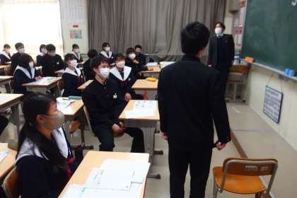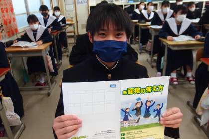 5時間目、3年生の各教室では、入試の面接練習が進められていました。