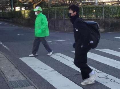 左右をよく見て横断しています 〜今日の登校風景2〜