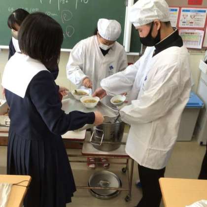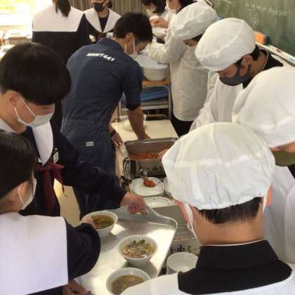 はるさめスープに入っている春雨を探している生徒の姿を見かけました。