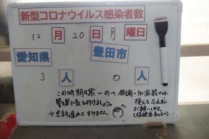 オミクロン株の脅威がひたひたと近づいてきていますが、愛知県、豊田市ともに新規感染者数の数は低い状態をキープしています。