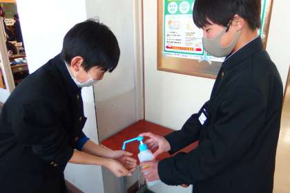 生徒のみなさんは、しっかりと手洗い、きちんと消毒をしています。