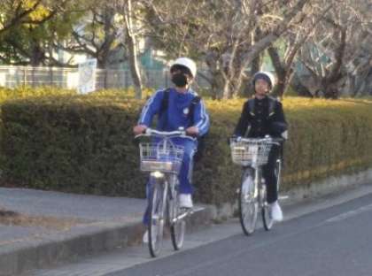 その際、自転車通学者は正門で自転車から降り、自転車を押して、中庭を通り、自転車置き場へ向かうようにしましょう。