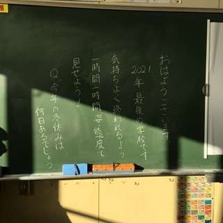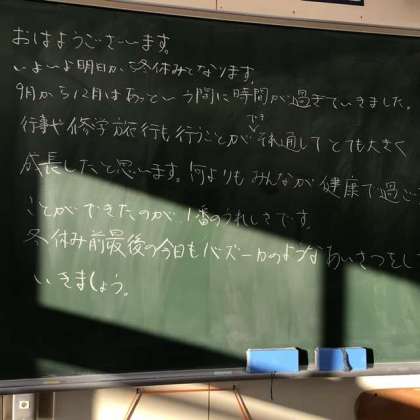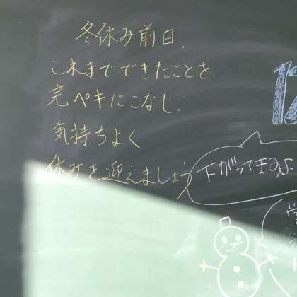 冬休み前最後の1日の朝、教室の黒板には担任の先生からの熱いメッセージがありました。
