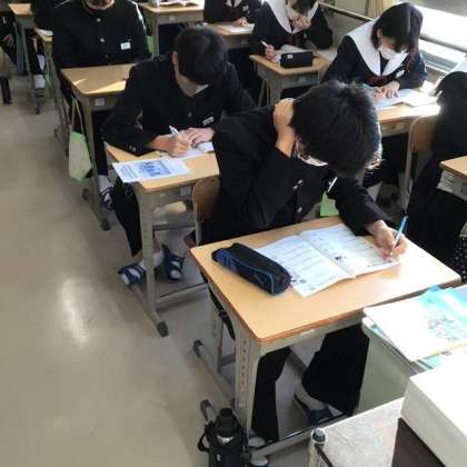 3年生の教室では、冬休みのテキストに取り組む生徒や、面接試験の準備を進める生徒、タブレットを使って調べ学習や健康観察に取り組んでいる生徒の姿が目立ちました。