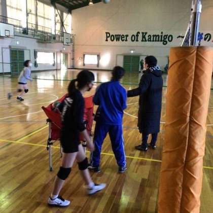 体育館では、午前中はバレー部女子とバスケ部が活動していました。