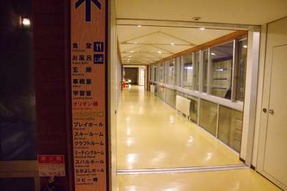 自然の家の施設は、独立した棟が廊下でつながっているつくりとなっています。
