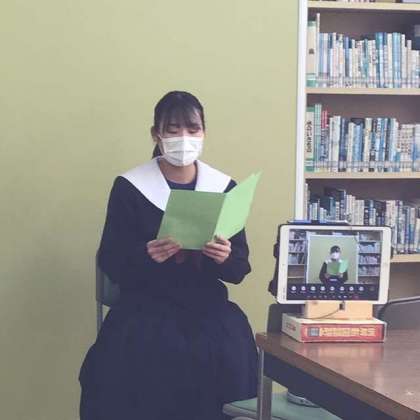 福祉委員会、美化委員会からの連絡の後、生徒代表の3年生女子生徒が、「一年の抱負」を発表しました。