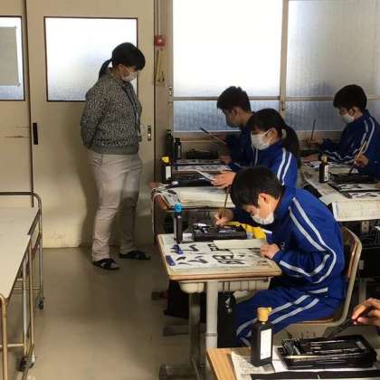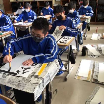 書初め大会を行いました 【1年2組の様子です】