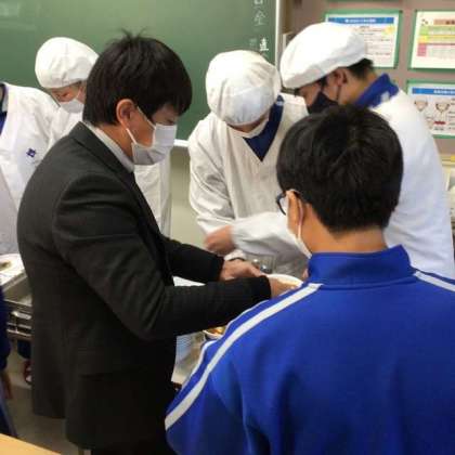今日は、給食準備の時間、3年2組の教室にお邪魔しました。