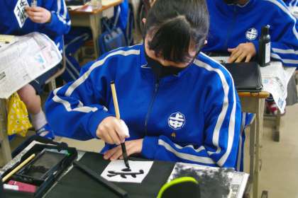書初め大会のあとの学級の時間に、新しい年の目標や決意をしたためているクラスがありました。