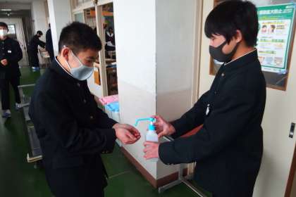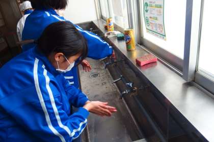給食の前には、しっかり手洗い、しっかり消毒です。
