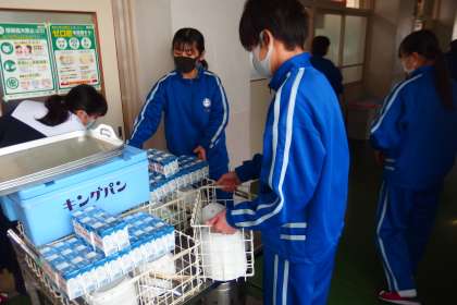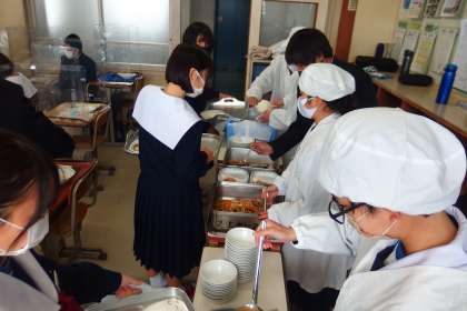 1年生の配膳の様子です。