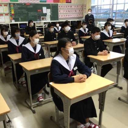 3年生の生徒は、集中して聞き入っていました。