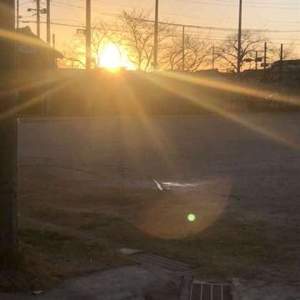眩しい朝日の中、部活に参加する生徒は登校し、準備を始めています、