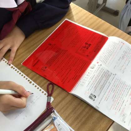 受験生の必需品?赤い暗記シートを使ってテスト勉強をしている生徒が多いですね。