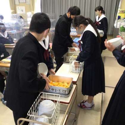 係の生徒の指示で、順番に手洗いに動くわ、テキパキと配膳台を用意するわ、食器などを運ぶわ、そのスピードに驚きました。