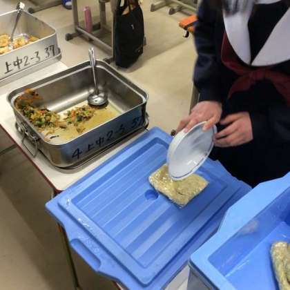 今週最後の給食です 【2年3組 給食準備の様子です】