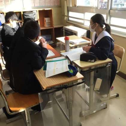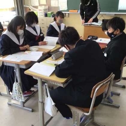 生徒は、グループになって、自分の意見を発表して、仲間と共有しました。